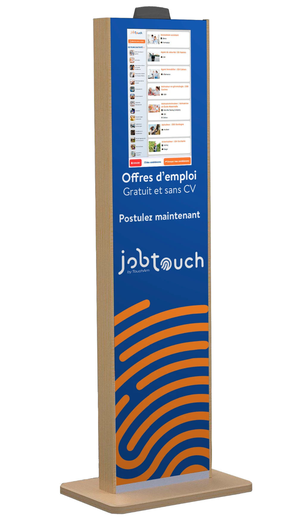La borne JobTouch est une solution clé en main de diffusion d’annonces d’emploi, conçue pour les universités, écoles professionnelles, centres de formation, mairies, collectivités territoriales, agences de proximité et tout espace fréquenté par des personnes en recherche d’opportunités professionnelles.